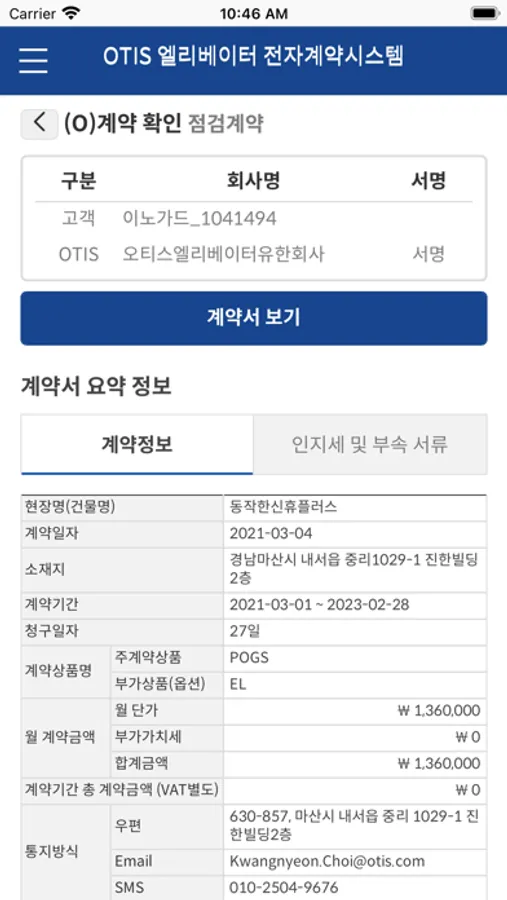 OTIS 와 고객 간 계약 조회 및 체결을 지원하는 앱