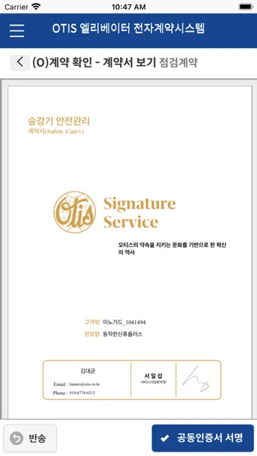 OTIS 전자 계약 Screenshots