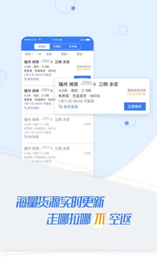 海量货源实时更新,找货拉货方便快捷,干线长途货运、短途货运、回程货、产源货随时随地找货配货。