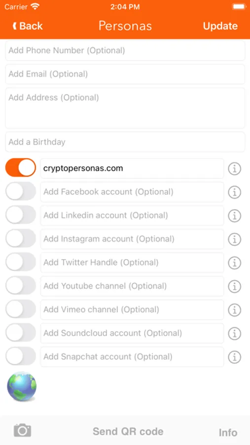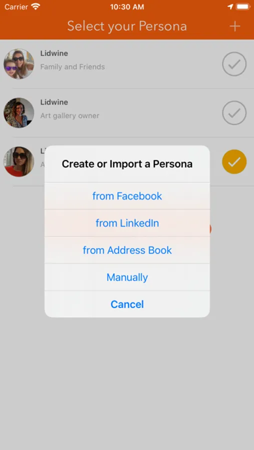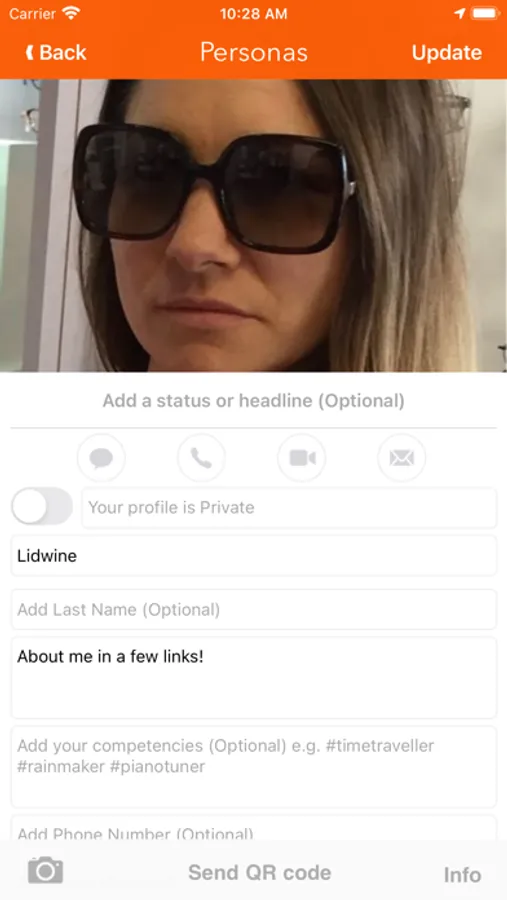 your *Personas* can be shared via QR codes and using Bluetooth.