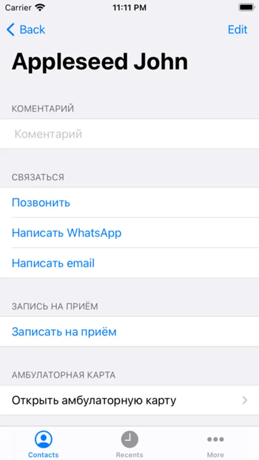 Patient registration, sync with calendars and contacts, manage and print medical documentation, photo and x-ray protocols, statistics and analytic.