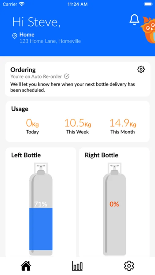 - Receive helpful alerts, know about bottle deliveries, unusual usage and leaks.