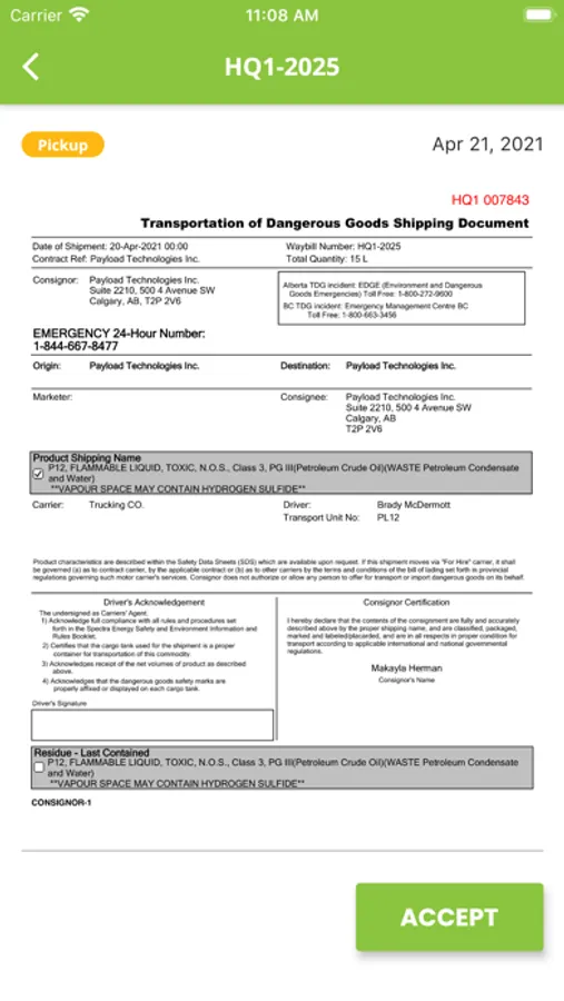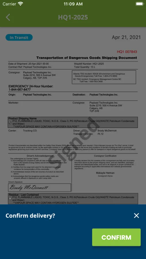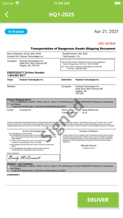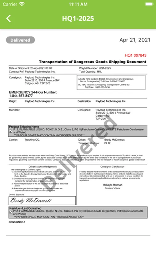 Payload TDG Mobile tracks transportation of dangerous goods to manage your regulatory compliance.