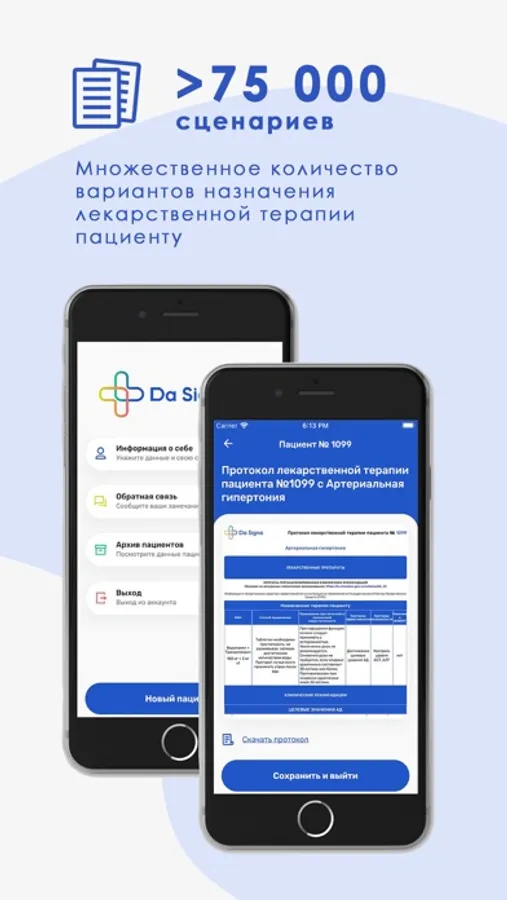- врачу в рамках протокола принятия решения (файл pdf) с персонализированными клиническими рекомендациями и инструкциями по медицинскому применению.