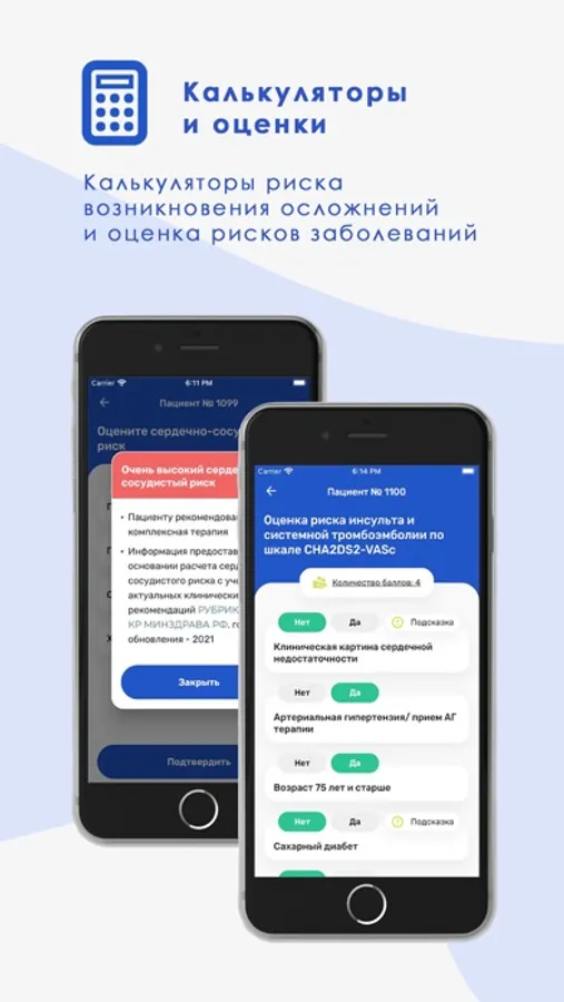 Клинические алгоритмы представлены в рамках нозологий, релиз алгоритмов осуществляется по мере разработки. В настоящий момент представлены различные клинические алгоритмы кардиологии.