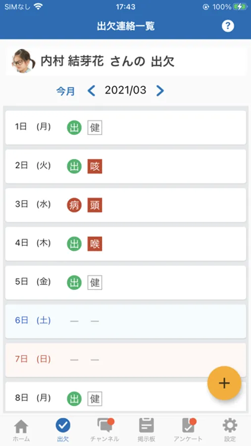 ・保護者から学校へ出欠情報の連絡を行ったり、過去の出欠状況を参照します。