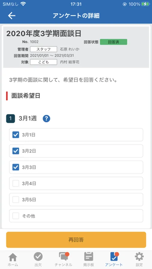 ・学校からの各種アンケートに回答したり、回答結果を参照します。