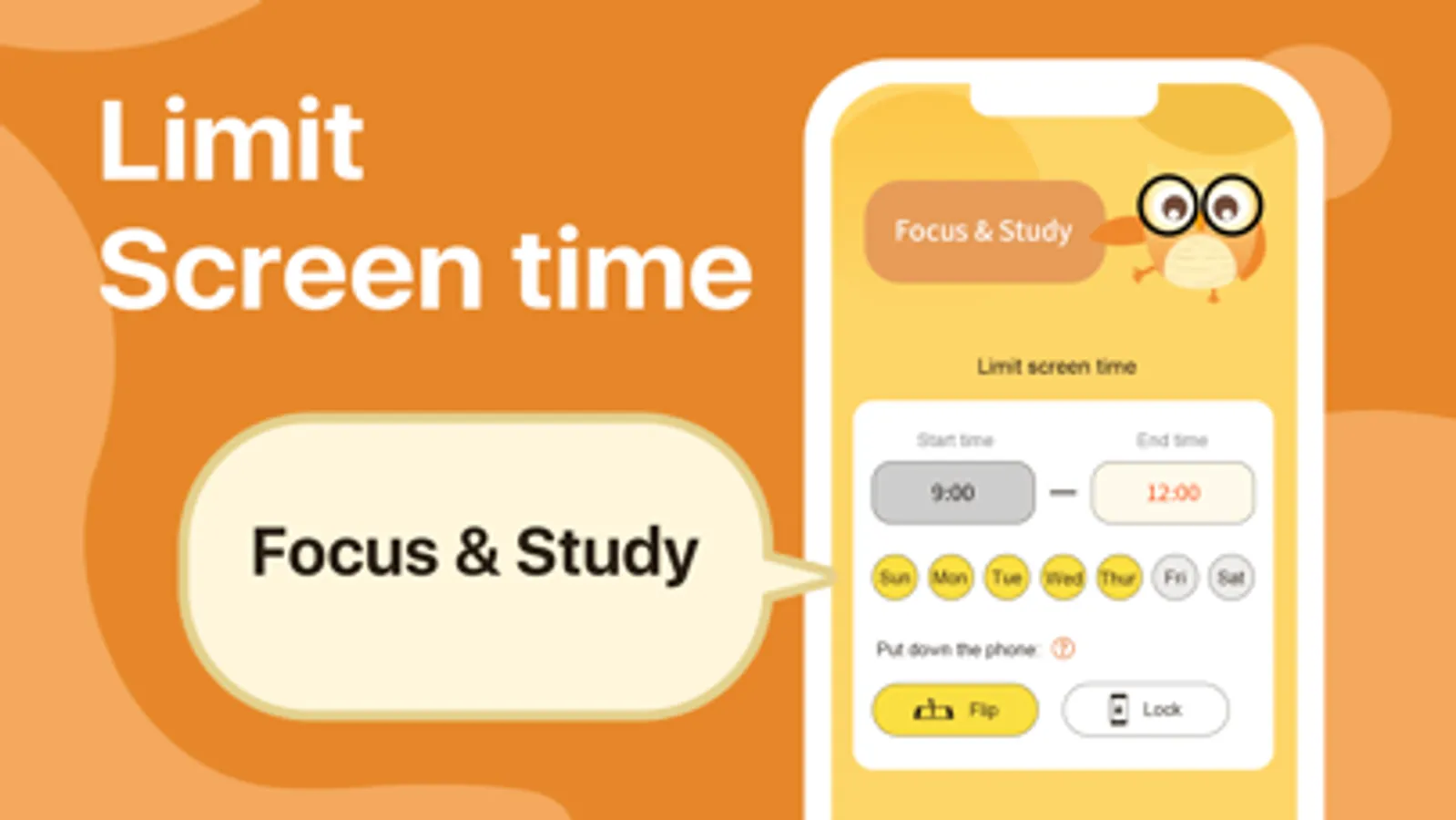 Custom settings the limit time period of the phone, remind you to put down your phone every day, focus and study.