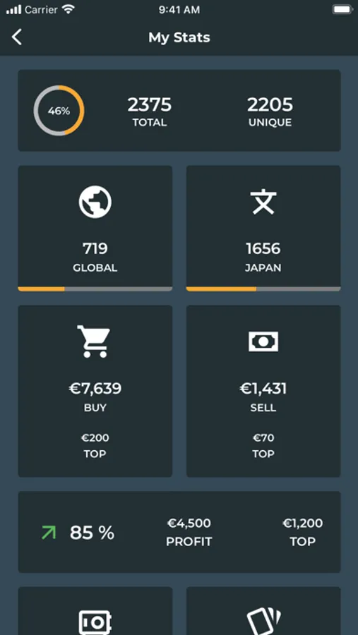 Complete statistics to follow the evolution of your collection. Easily find all your duplicate cards, graded cards, etc.