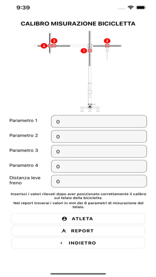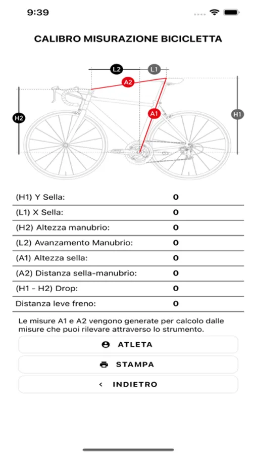 Posiziona correttamente il calibro MD sul telaio da misurare, inserisci i valori rilevati nei rispettivi campi della App e calcola in maniera rapida e precisa tutti i parametri di assetto per una corretta posizione in sella.