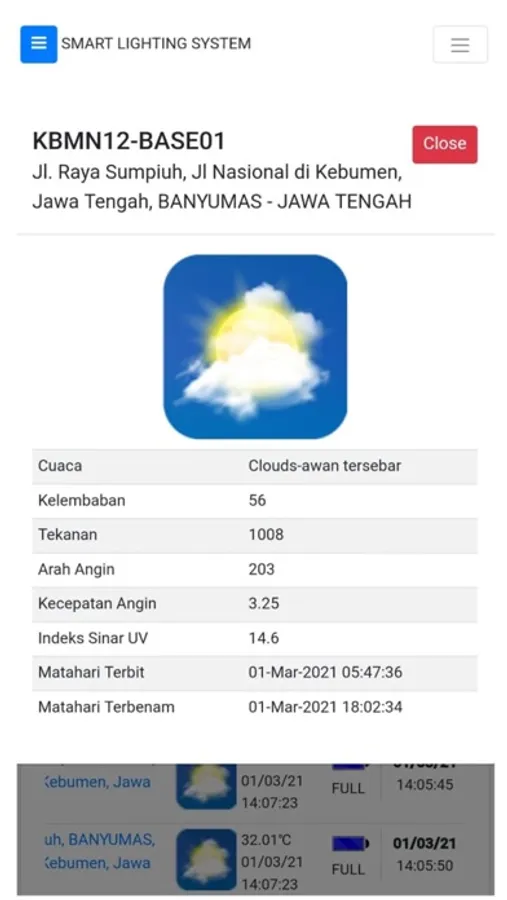 Dalam halaman ini pengguna dapat mengetahui nomor SIM card, pulsa, lokasi pemasangan, tanggal pemasangan dan kondisi terkini LPJU-TS