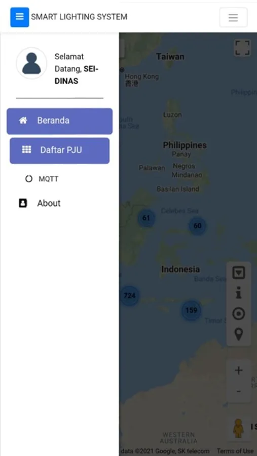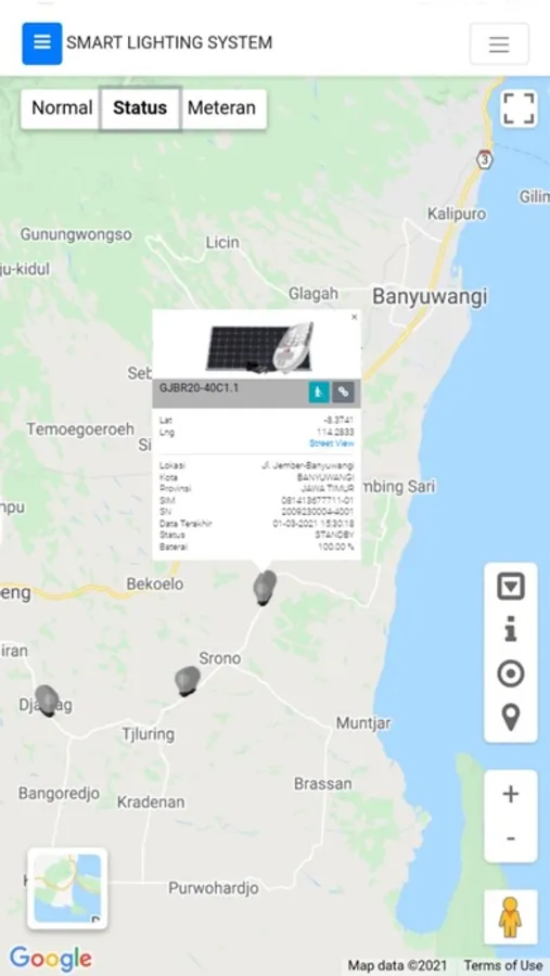 Fungsi dari Street Light Map ini, selain dapat melihat posisi tiang atau titik lampu berdasarkan titik koordinat, melalui halaman ini juga dapat memantau kondisi terkini status lampu