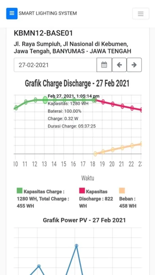 Proses pengisian tenaga surya melaui PV Modules ke Baterai lithium dapat dipantau melalui grafik persentase, sehingga dapat memudahkan pengguna untuk menganalisa proses dan fungsinya dalam keadaan baik atau tidak
