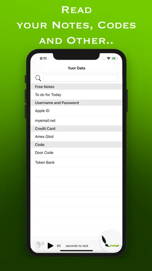 Through an access key that only you know you will be able to consult your notes. A timer blocks the application after 60 seconds so as not to allow outsiders to see your data.