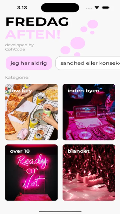 Få en sjovere aften med vennerne med vores underholdende spil! Vælg mellem 7 forskellige game modes for at lære dine meddeltagere bedre at kende. Appen er enkel og helt gratis at downloade.