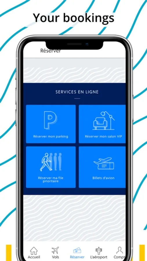 • Directly book your parking space and our other services (VIP lounges, Nice priority queue access) on the app.
