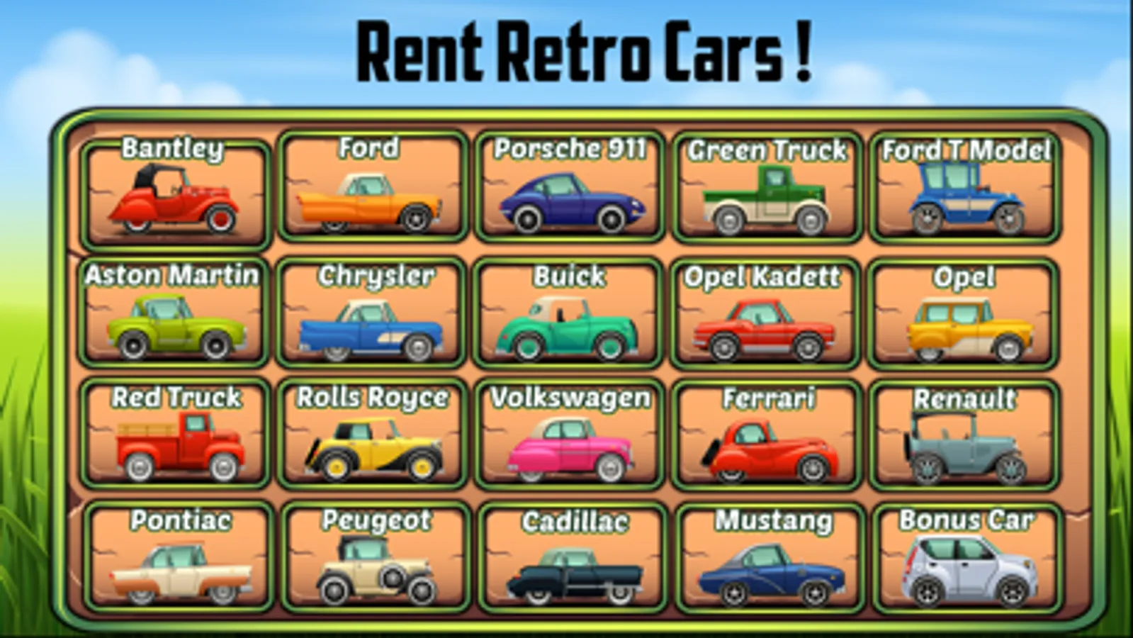 RENT COOL RETRO CARS AND COMPLETE THE LEVELS