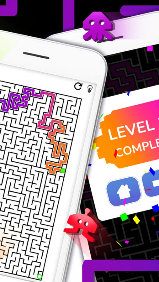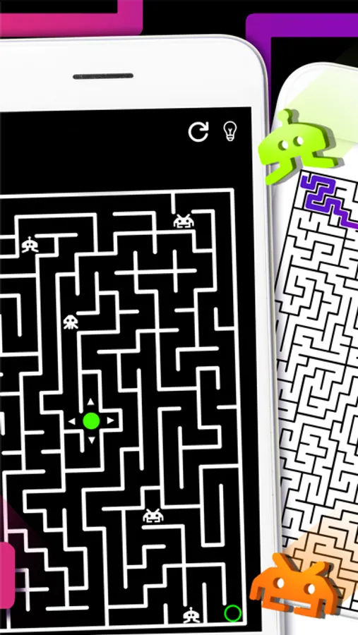 The game offers the possibility to play with a black or white maze background. You just have to choose your favorite! The game mechanics stay the same, just change the day or night mode and enjoy!