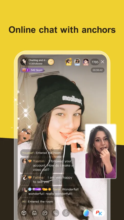 You can have a live chat and call with your favorite anchor in the live streaming room, come and interact with your favorite anchor!