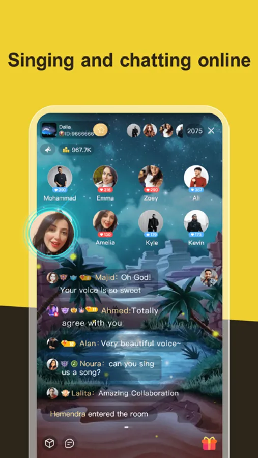 Ghanny is a comprehensive entertainment application for online sing karaoke and enjoy wonderful live. Solo or invite friends or strangers to duet with you while you sing karaoke, it has a variety of different sound effects for editing. You can make new friends through singing and interact with your friends. Join karaoke rooms and use the rating function to show your singing ability, or invite friends or strangers to sing in real time, or participate in singing pk, or watch live and interact with streamers, attend exciting events, hold online parties and make new friends in online chat rooms.