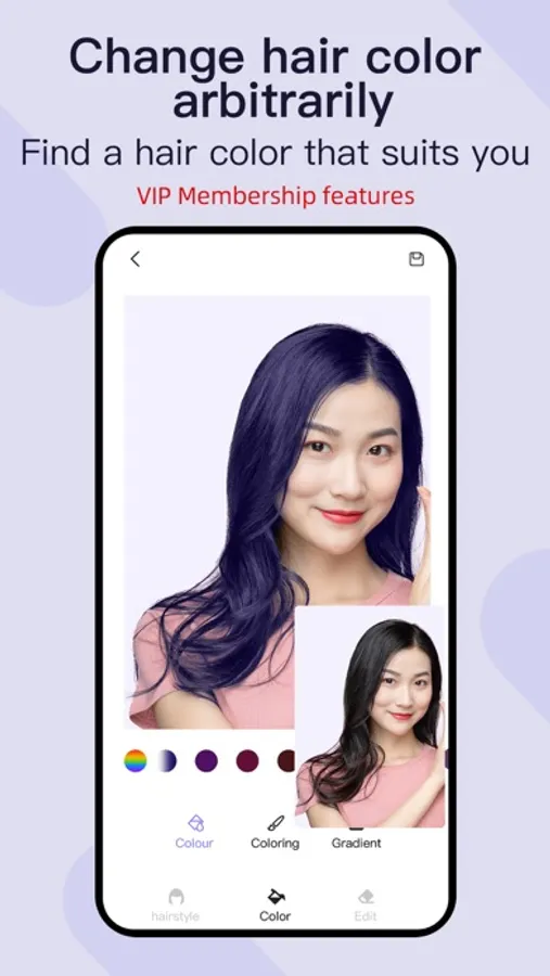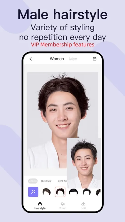 *Please note that if you want to apply hairstyles and colors to your photos and save them, you need to purchase a VIP membership to.