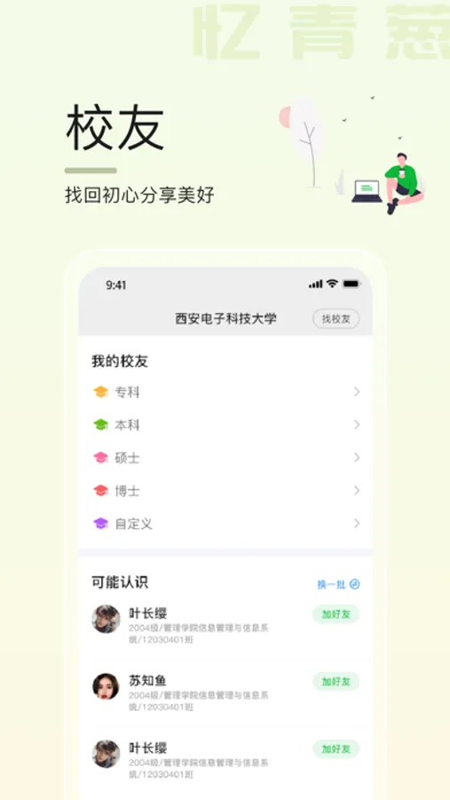 通过忆青葱,母校可以建立完善的校友信息库,根据需要检索,筛选各种维度的数据,为校友提供各种服务和支持!