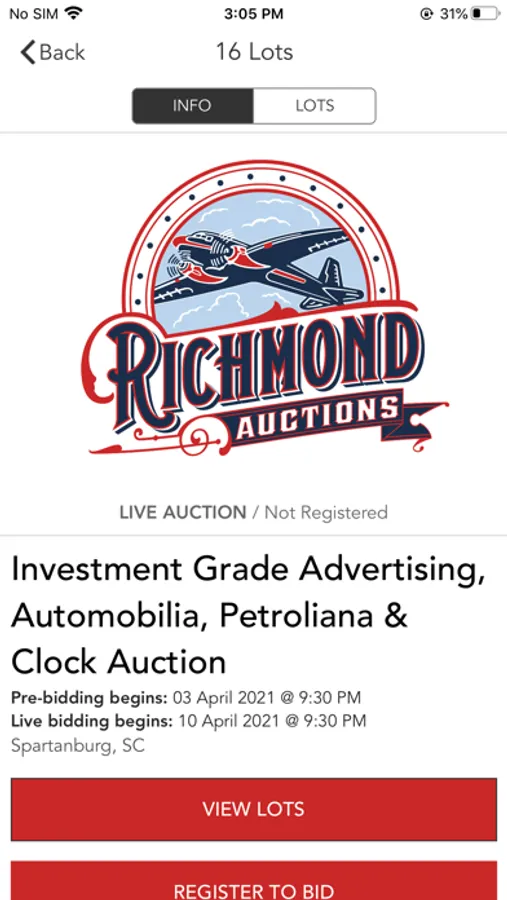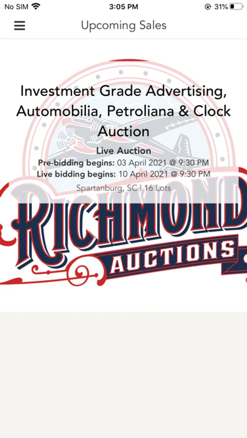 Explore and bid live with Richmond Auction’s mobile app. The Richmond Auctions app allows users to easily browse current and upcoming sales, as well as enter the Richmond Auctions Digital Bid Room to watch ongoing auctions and bid in real time, all from your mobile device. The goal of Richmond Auctions is to bring you the highest quality pieces, with full length descriptions that has never been seen in the auction world. At Richmond Auctions you’ll see the highest quality audio and visual descriptions ever seen in the market. How can we do this? By limiting our focus to the best, featured with incredible detail to give you confidence when bidding. You can buy collectibles anywhere, but Richmond Auctions will be your destination when want to confidently buy the best. Participate in our sales on the go or from the comfort of your home using your mobile device and gain access to the following features: -Quick registration for upcoming auctions -Track upcoming lots and receive push notifications -Leave absentee bids for upcoming auctions -Bid live using our simple “swipe to bid” interface -Track your bidding activity -Watch sales in real time -View calendar of past and future sales