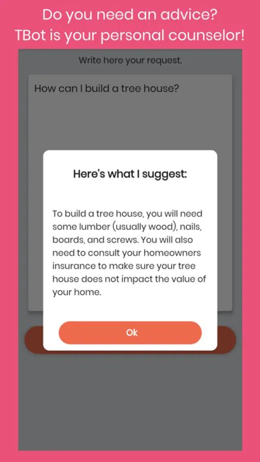 If all that isn't enough, TBot lets you ask for general advice, without any particular formats, whatever you need. You can even chat with TBot! Many more features are coming in the future.