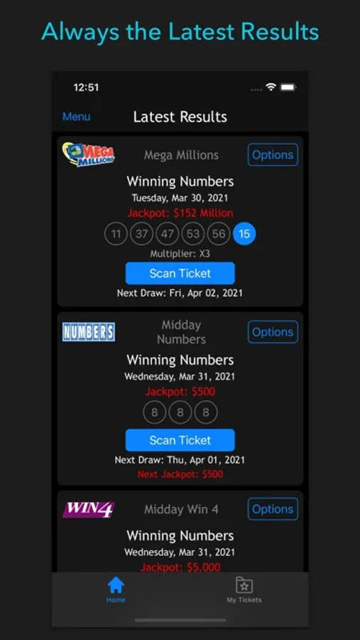 New York Lottery Scan & Result is the all-in-one Lottery App for all New York Lotteries at your fingertips.