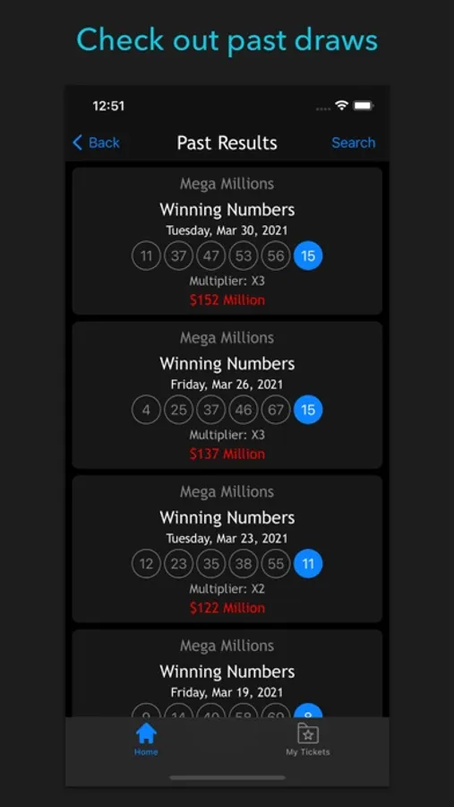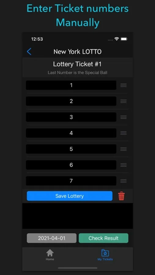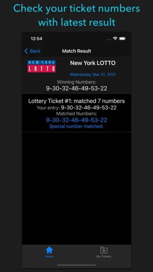 The jewel of this app is the Multiline Ticket Scanner which is easy, intuitive, very user-friendly, just like you want it. After the scan, you can match it immediately according to the lottery date, or you can save it for the future and keep records. Check out your tickets in the My Tickets tab and get everything you want to do with them, edit, delete, match results, you name it.