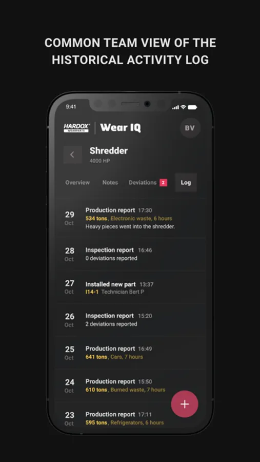 - Keep track of installed wear parts and historical activities in your equipment