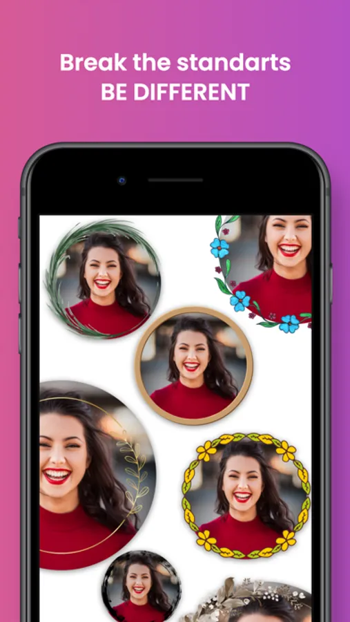Have attractive profile photos in other people's lists. A non-standard profile photo grabs people's attention. You can create super cool profile pictures with this border maker app. You can preview your selfies easily. You can instantly save and use the framed photo you like.