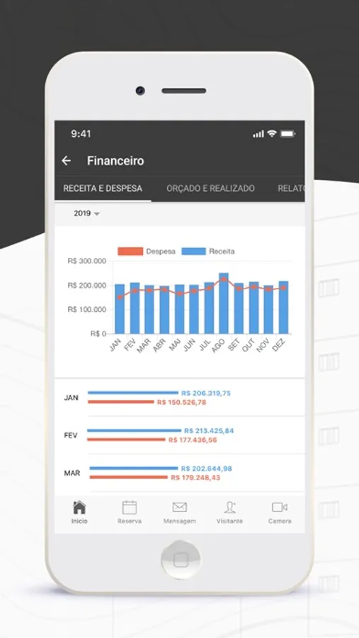 - comparativo de orçado versus realizado (gráficos e detalhamento)
