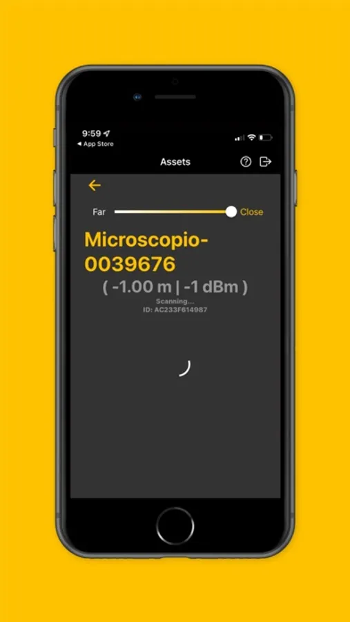 Users just have to log in with their platform credentials, type-in the asset's name and the tool resolves the room or area in which the asset is located in real-time. Once in the room, the App turns the phone into a proximity radar to guide the user into the asset's proximity.