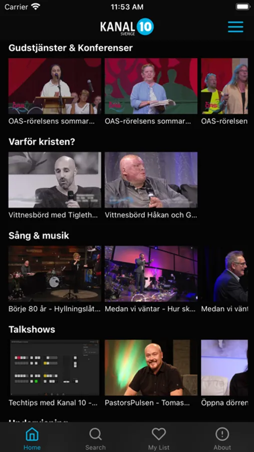 Kanal 10 är en kristen tv kanal där du får det bästa inom kristen tv med original innehåll såväl som innehåll från nordiska och internationella församlingar och tjänster. Kanal 10 erbjuder nyheter, sång- och musikprogram, talkshows, reportage, dokumentärer, livsberättelser, gudstjänster, konserter, diskussioner, samtal och mycket mer. Välkommen till en spännande tv upplevelse.