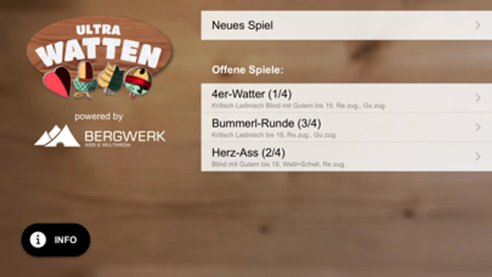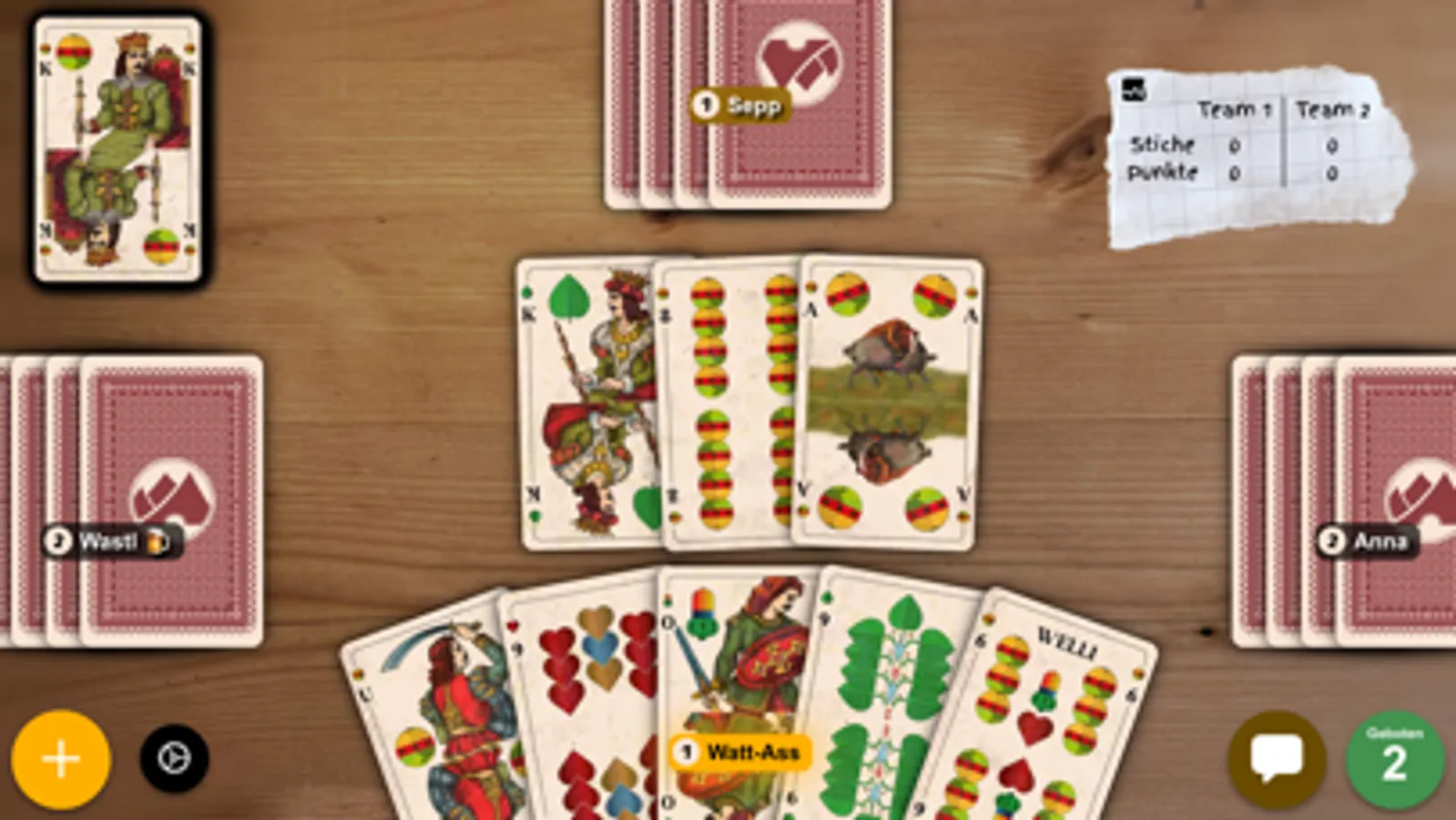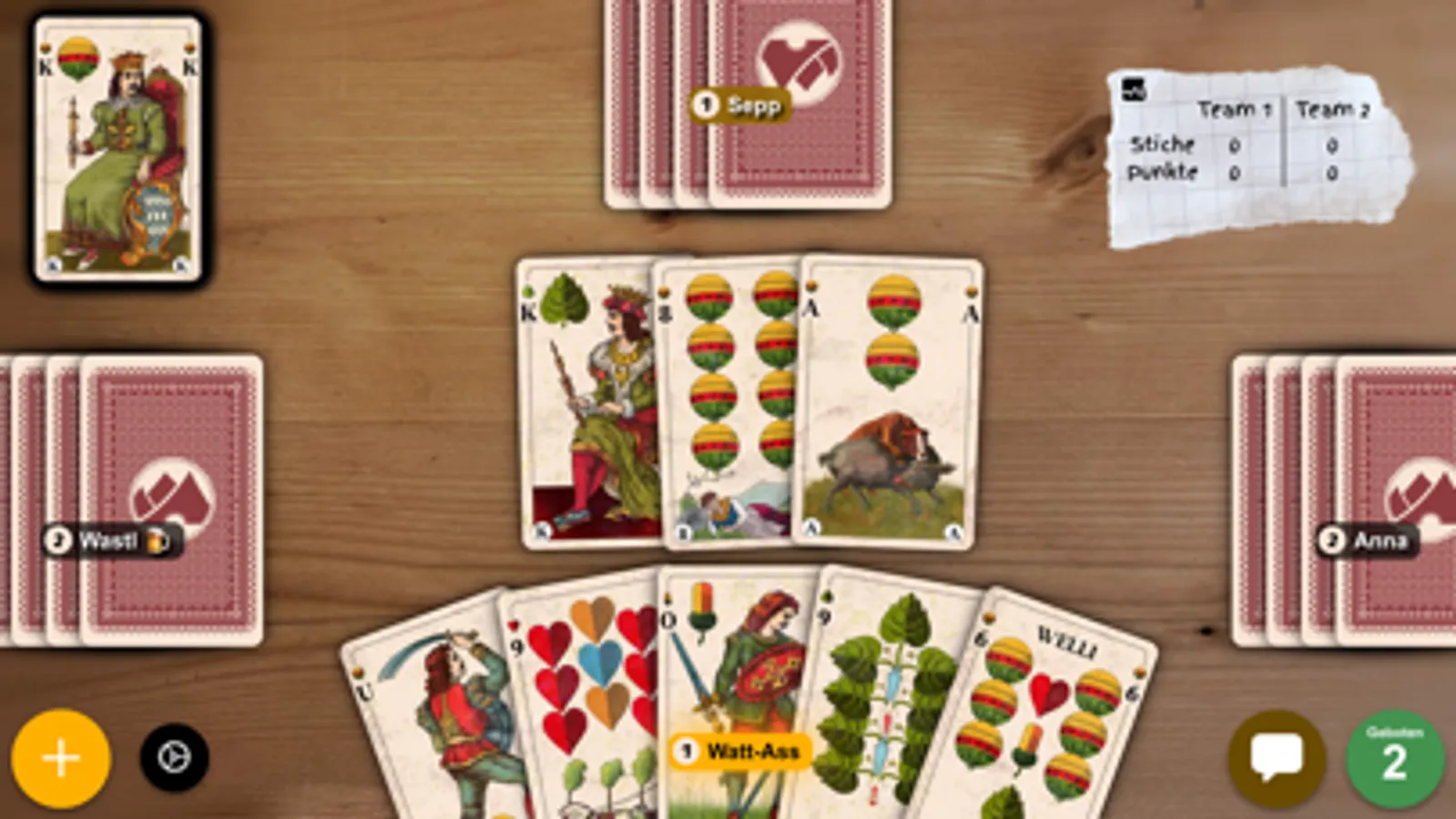 Das legendäre Kartenspiel "Watten" gibt's jetzt als App - Spiele online gemeinsam mit Freunden oder alleine gegen Computer-Gegner - Jedenfalls in allen denkbaren Varianten! Kritisch, Ladinisch, Blind und/oder mit Gutem!