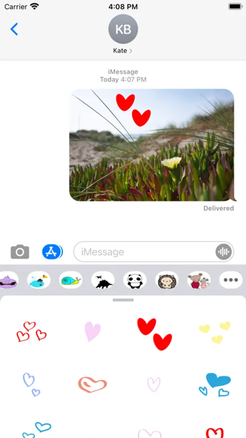 Express yourself in new ways with KAT Stickers you can put anywhere in your chat. Scale, rotate, and layer stickers; even place them on photos you send and receive!