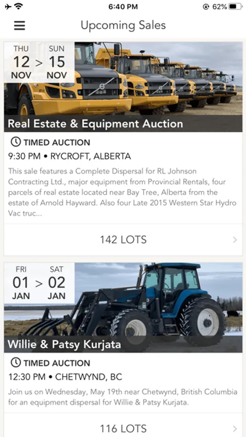 Weaver Auctions is a Premier Auction Company servicing Northern Alberta and British Columbia. We offer first class, professional auction services specializing in Unreserved, Agricultural, Industrial and Real Estate Auctions. With the Weaver Auctions app, you can preview, watch and bid in our auctions from your mobile / tablet device. Participate in our sales while on-the-go and gain access to the following features: •Quick Registration •Following upcoming lots of interest •Push notifications to ensure you engage on items of interest •Track bidding history and activity •Watch live auctions