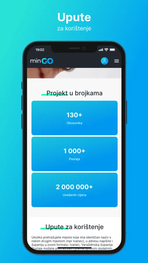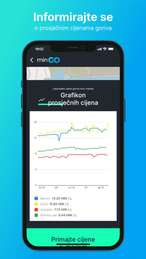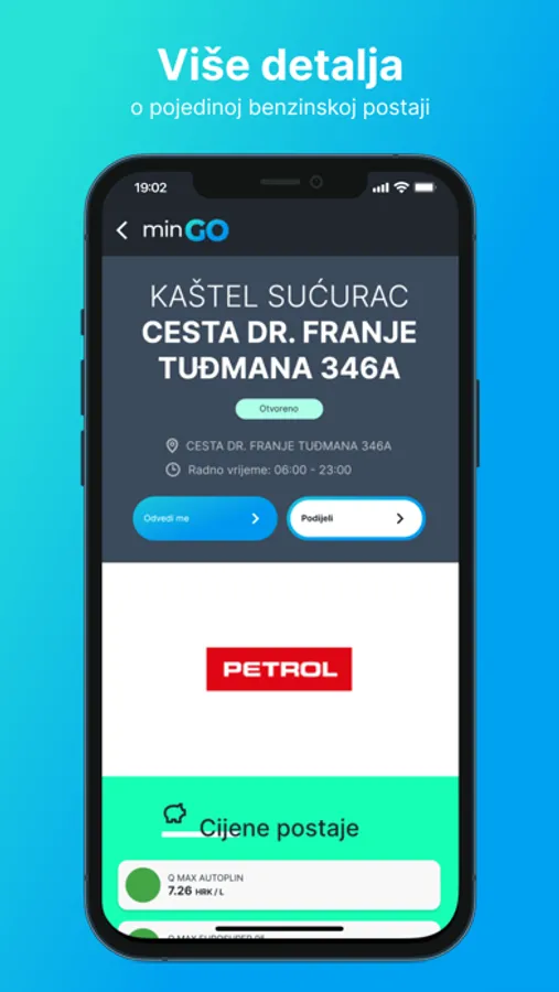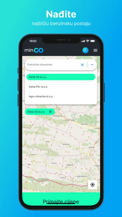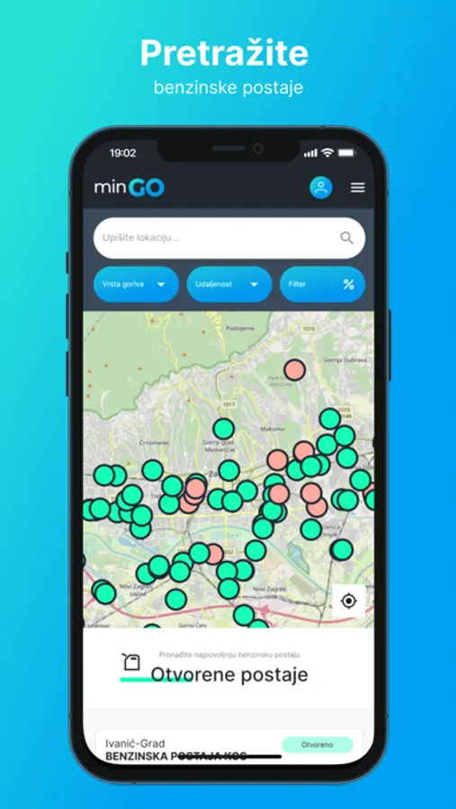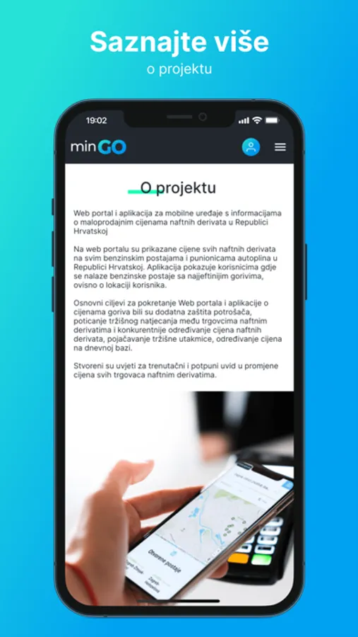 „Min go“ aplikacija omogućuje traženje benzinske postaje sa najjeftinijim gorivima u Vašoj blizini ili nekom drugom željenom mjestu u Hrvatskoj. Aplikacija od sada omogućuje pretraživanje lokacija elektro-punionica s prikazom cijene punjenja po satu, s brojnim informacijama o postajama i cijenama.