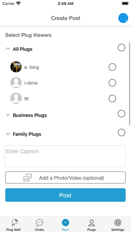 PlugYou also includes a Social Media “PLUG WALL” where you can post, comment and share content to users (PLUGS) you select from categories created by you within your Private and Protected Exclusive Communication!