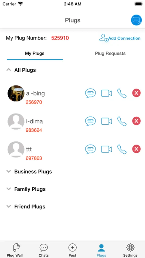 • Receive and Send Plug Requests with an optional note to further identify who you’re accepting into Your Exclusive Communication.