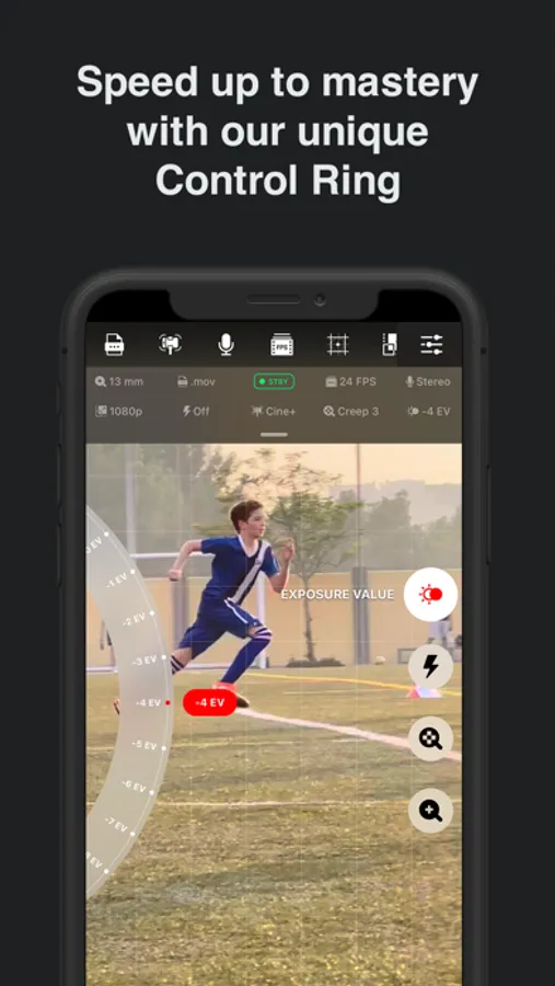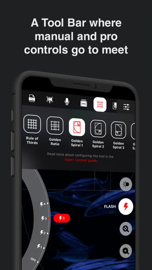SuperContent is the only mobile camera / content creation app that is built completely in SwiftUI. This allows for the most buttery controls and allowed us to create one of our hallmark design components, SuperContent's Control Ring. This ingenious interface allows for any of SuperContent's modules to be controlled in the same way. Simply choose the module from the Main Controls (ie servo zoom) and the Control Ring will update its elements for a seamless experience.
