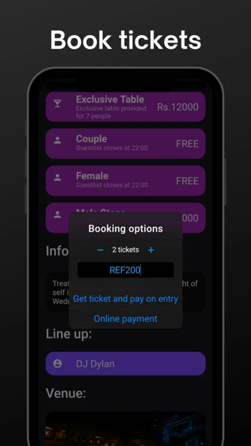 Additionally, we offer users complete access to all events, offers, bookings and deals in all of our partnered venues around town.