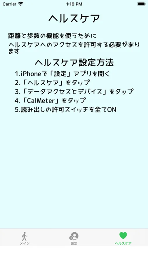 ヘルスケアと連携することで距離、歩数を計測可能