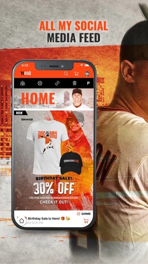 YungJoc650 is the best way to stay connected with me. I’ve created this App so that we can stay in touch in a different way. I’ve made it easy for you to keep up with my social media (it's all here). I’ve made it easy for you to get some of my merch and baseball memorabilia for you or your family & friends. I’ve also set up my YungJoc650 App so that you get access to exclusive content that isn’t available anywhere else, like my training program, sweepstakes and contests, giveaways and the chance to get in on some cool experiences.