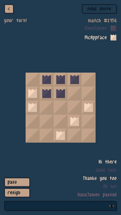 Play with friends or strangers over the internet. No ads, purchases or sign-up; just have fun! Defeat your opponent by capturing the most territory or by forcing them to resign.