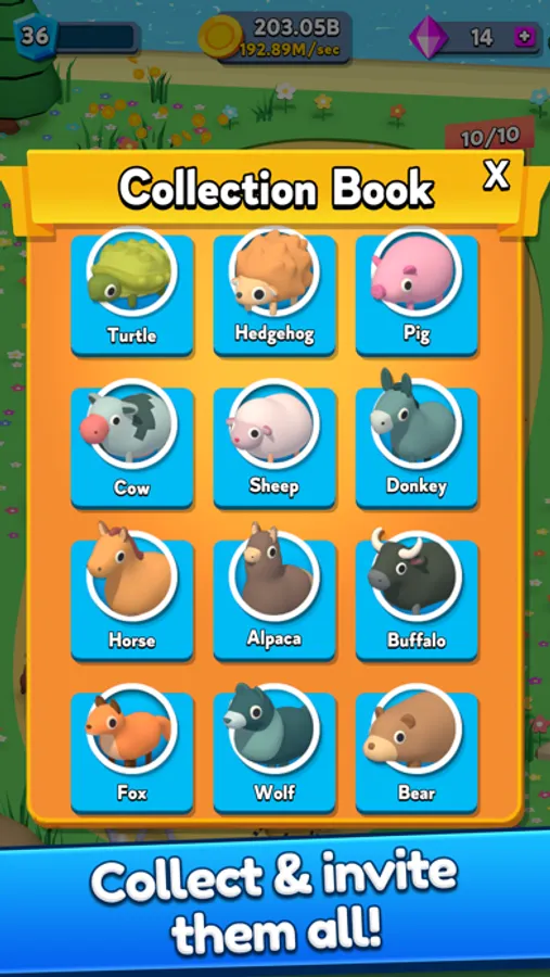 - Over 40 adorable animals run, jump, prance, and merge in an endless party that continues even while you’re idle or away!