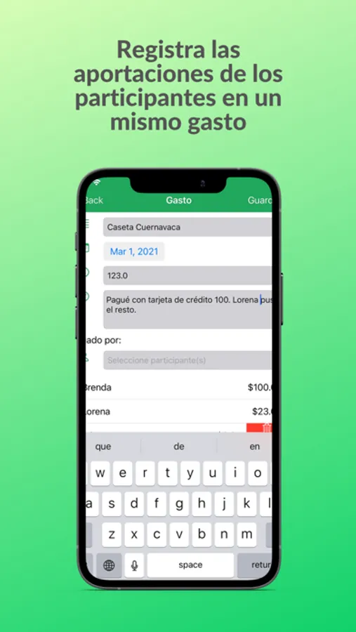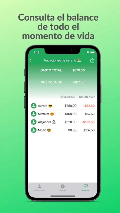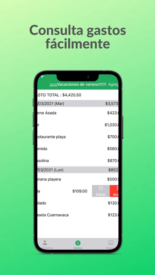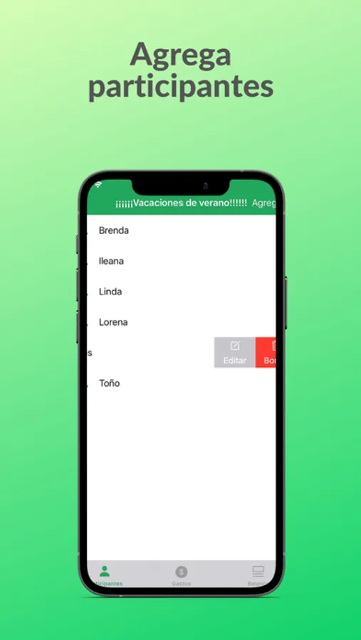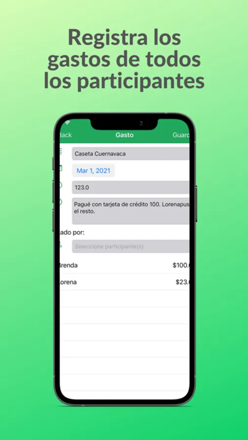 — Registra los gastos que ha realizado cada participante. También puedes dividir el pago de un gasto entre diferentes participantes.