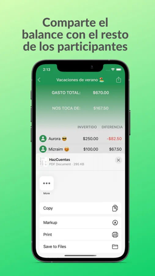 Conoce el gasto total del evento, la división del gasto entre el número de invitados y cuánto ha invertido y cuánto se le debe a cada invitado.