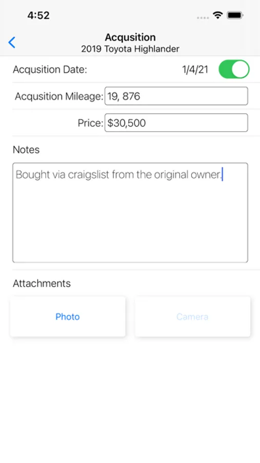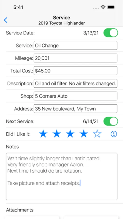 -Take pictures of your receipt, odometer, picture of the shop, etc., and attach them to service records.